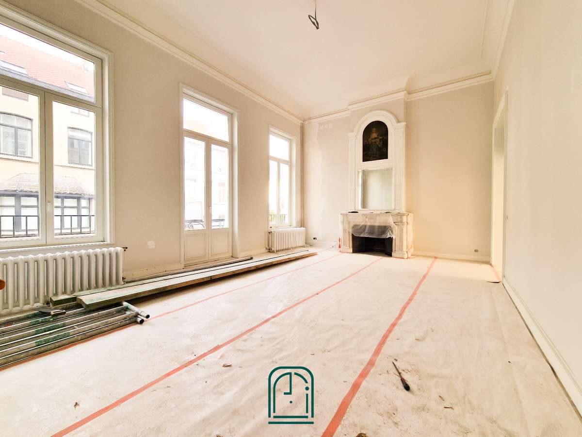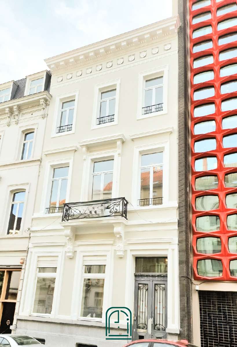 Het gebouw is een prachtig voorbeeld van Belgische burgerlijke architectuur, met elegante gevels, decoratieve details, antieke kroonluchters, marmeren schouwen en klassieke kenmerken. Het omvat een kelder met twee multifunctionele ruimten, een douche, een toilet, twee fietsenruimten en toegang tot de lift. De vier verdiepingen bieden royale kantoorruimte met veel licht en zeer hoge plafonds.